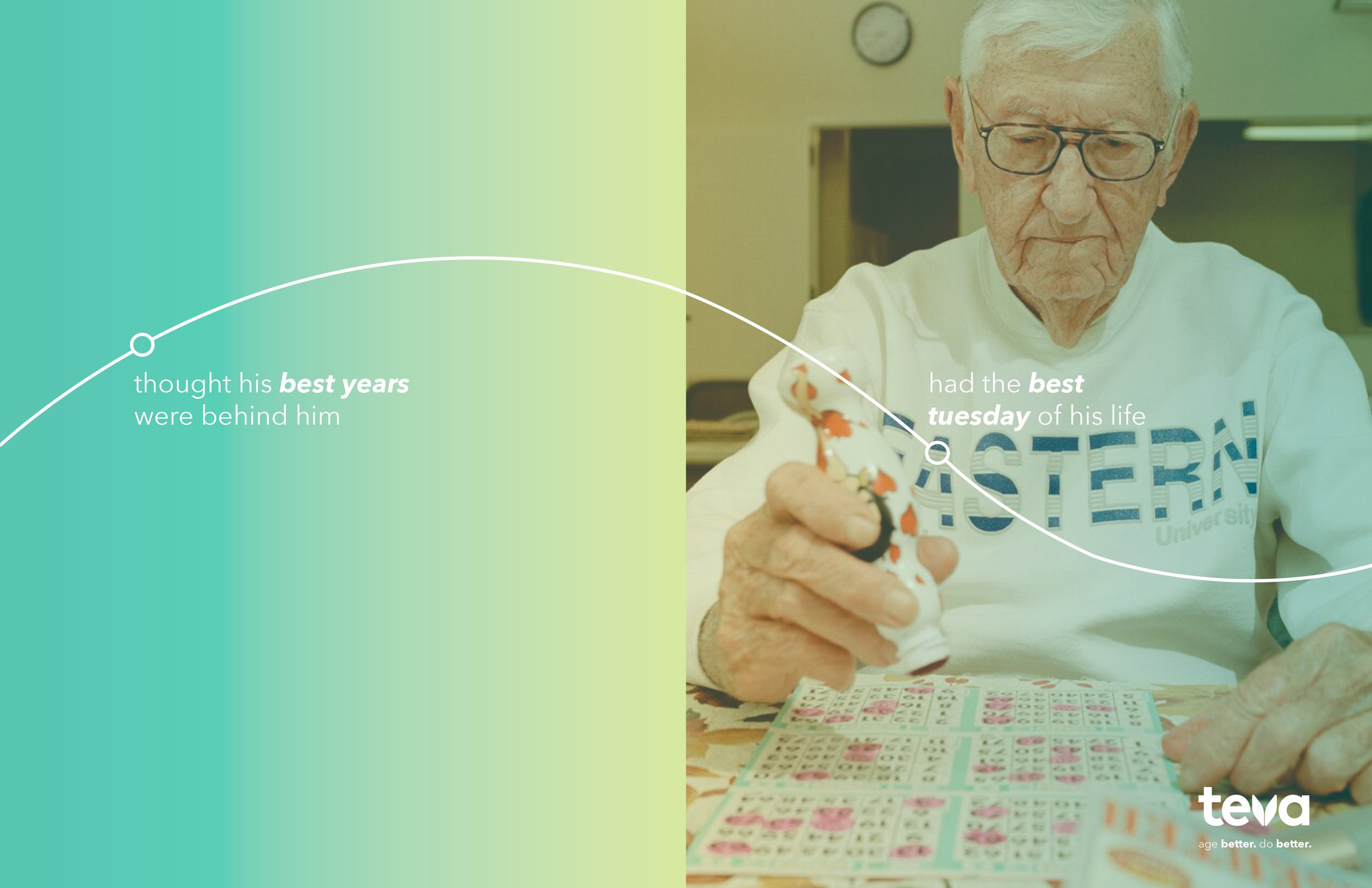 Every health and wellness company has a story about changing lives. It's on the wall in the lobby. It's in the annual report, somewhere near the headshot of the CEO looking thoughtful by a window. They call it doing good. And maybe it is. But good is a strange place to stop. Teva didn't want to stop. So we gave that restlessness a campaign. Built it around a single arc, connecting where patients are to where they are headed. Small shifts, real ones, across print, OOH, and digital. Because good can call it done, while better continues.